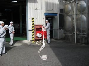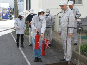 10月29日、柏工業では「工場で火災が発生した」という想定のもと、防災訓練を実施しました。